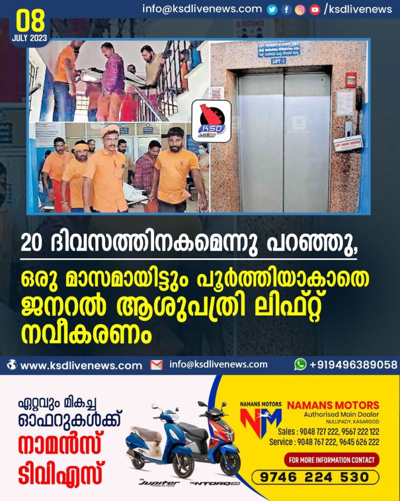 20 ദിവസത്തിനകമെന്നു പറഞ്ഞു, ഒരു മാസമായിട്ടും പൂർത്തിയാകാതെ ജനറൽ ആശുപത്രി ലിഫ്റ്റ് നവീകരണം