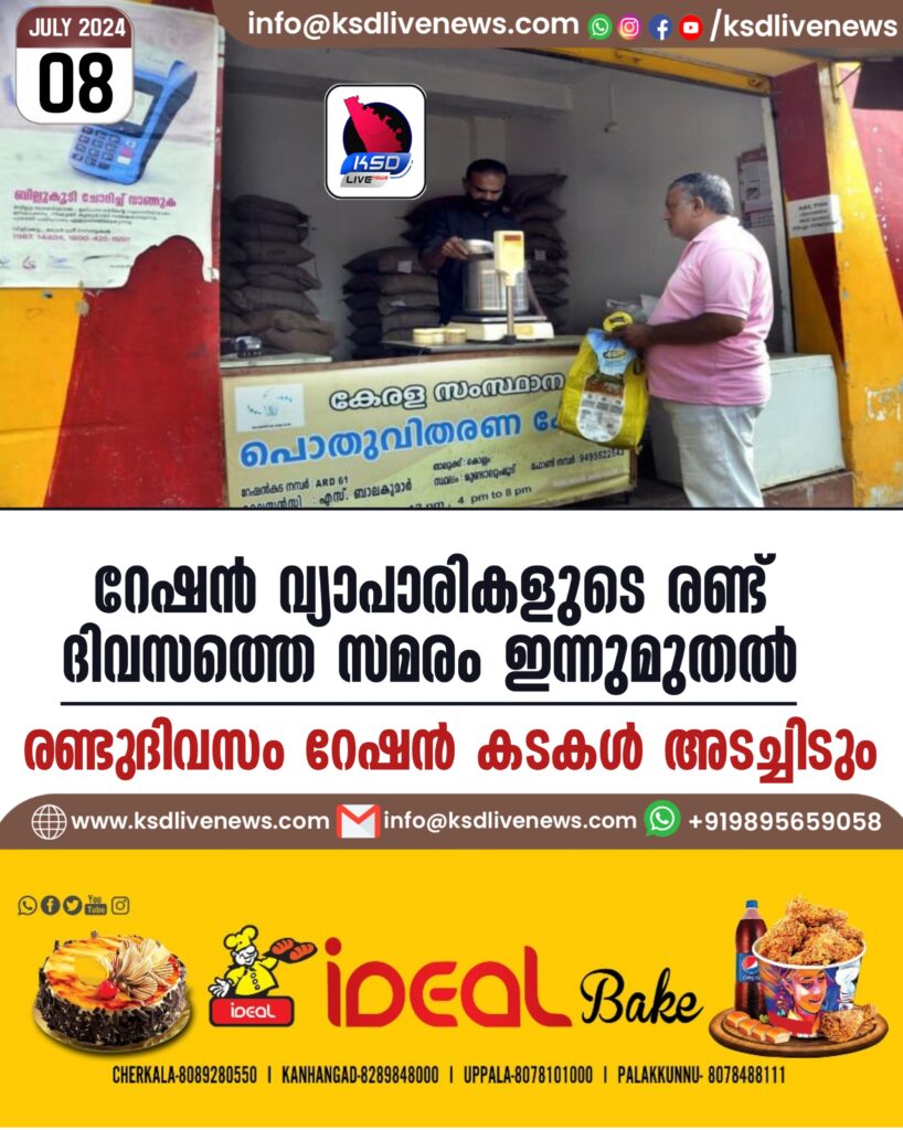 റേഷൻ വ്യാപാരികളുടെ രണ്ട് ദിവസത്തെ സമരം ഇന്നുമുതൽ; രണ്ടുദിവസം റേഷൻ കടകൾ അടച്ചിടും