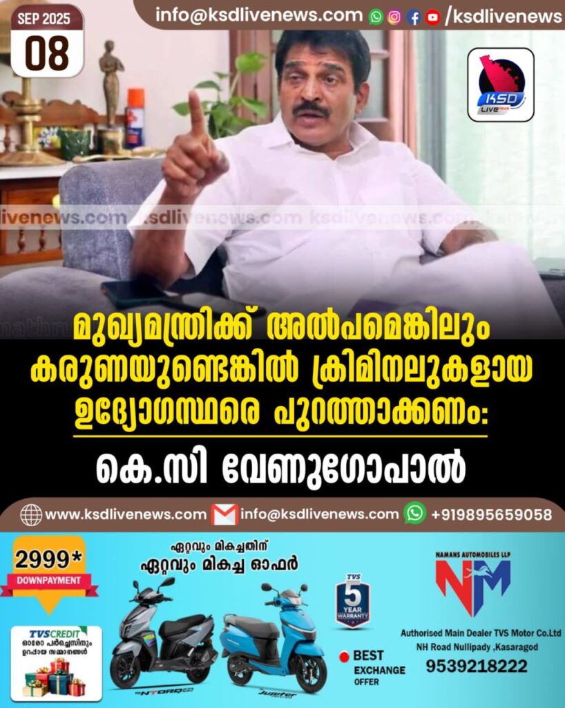 മുഖ്യമന്ത്രിക്ക് അല്പമെങ്കിലും കരുണയുണ്ടെങ്കില് ക്രിമിനലുകളായ ഉദ്യോഗസ്ഥരെ പുറത്താക്കണം: കെ.സി വേണുഗോപാൽ