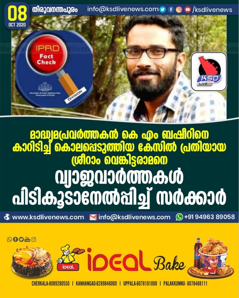മാദ്ധ്യമപ്രവർത്തകൻ കെ എം ബഷീറിനെ കാറിടിച്ച് കൊലപ്പെടുത്തിയ കേസിൽ പ്രതിയായ ശ്രീറാം വെങ്കിട്ടരാമനെ വ്യാജവാർത്തകൾ പിടികൂടാനേൽപ്പിച്ച് സർക്കാർ