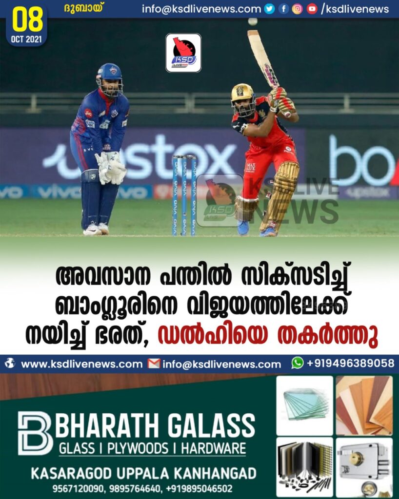 അവസാന പന്തില് സിക്സടിച്ച് ബാംഗ്ലൂരിനെ വിജയത്തിലേക്ക് നയിച്ച് ഭരത്, ഡല്ഹിയെ തകര്ത്തു