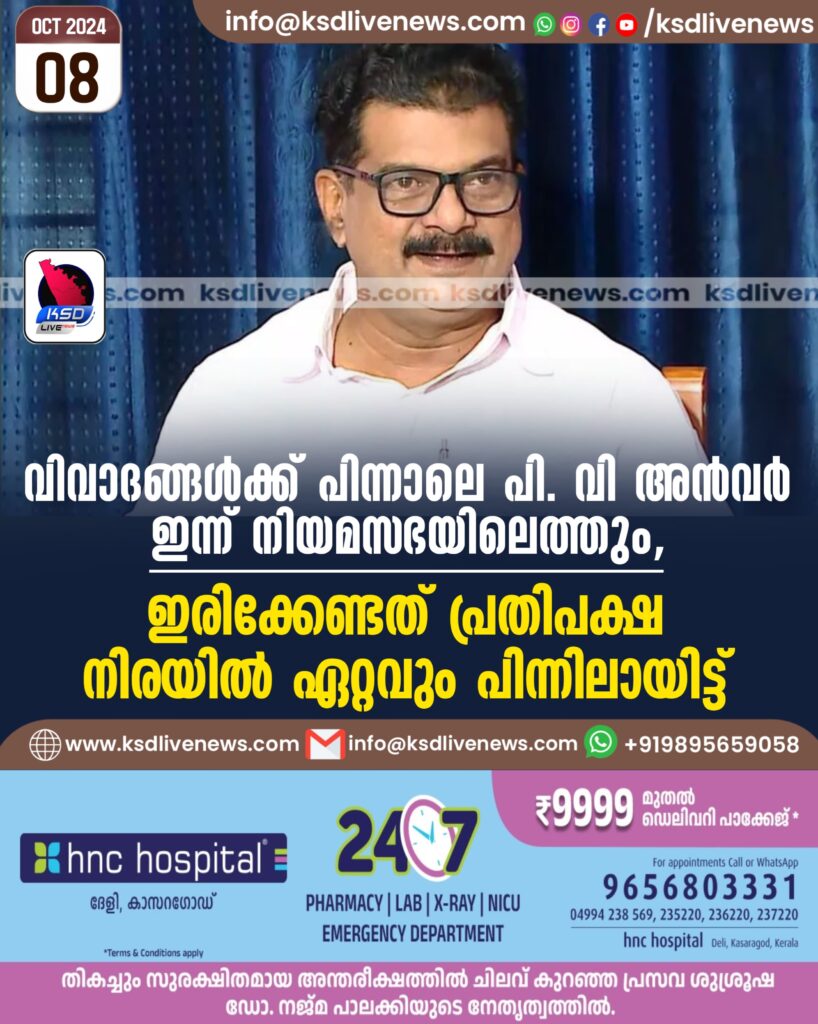 വിവാദങ്ങള്‍ക്ക് പിന്നാലെ പി.വി അൻവര്‍ ഇന്ന് നിയമസഭയിലെത്തും, ഇരിക്കേണ്ടത് പ്രതിപക്ഷ നിരയില്‍ ഏറ്റവും പിന്നിലായിട്ട്