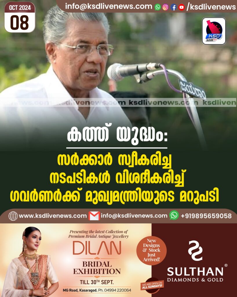കത്ത് യുദ്ധം: സർക്കാർ സ്വീകരിച്ച നടപടികൾ വിശദീകരിച്ച് ഗവർണർക്ക് മുഖ്യമന്ത്രിയുടെ മറുപടി