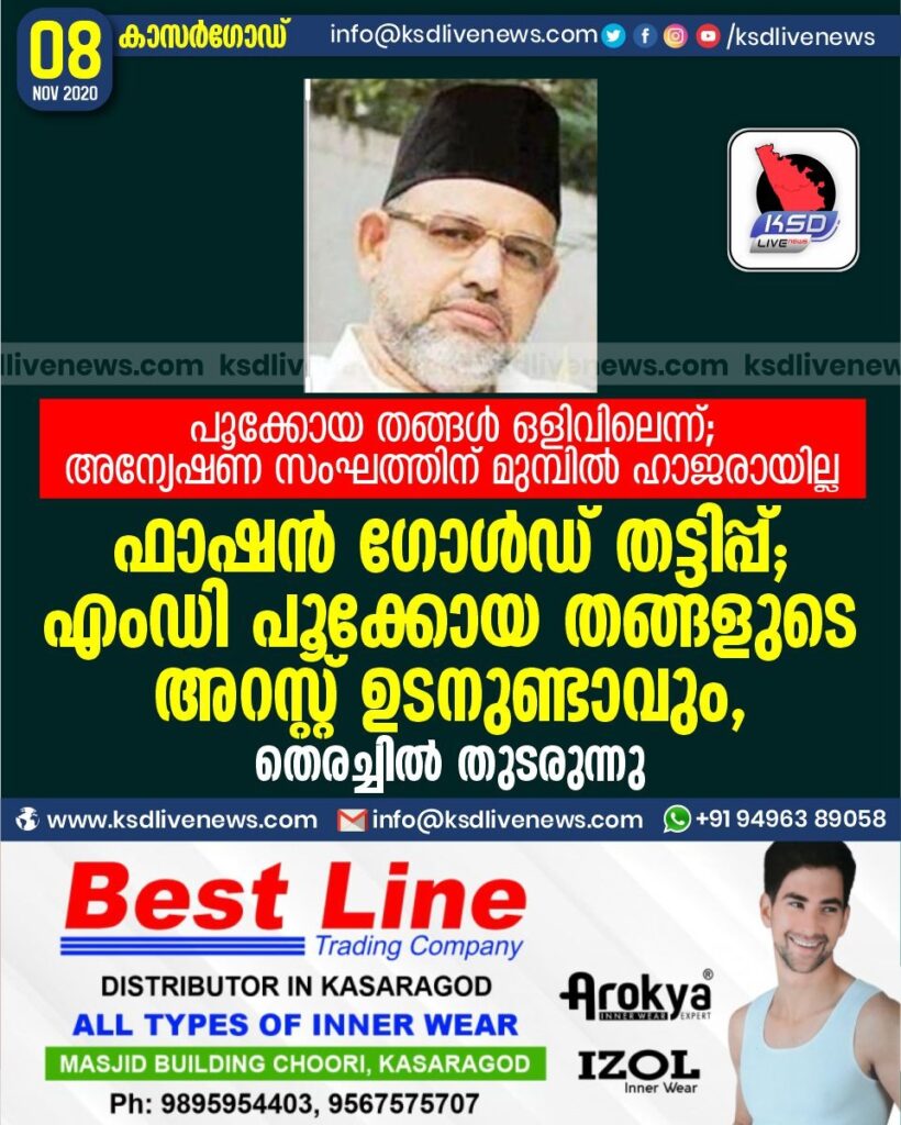 ഫാഷൻ ഗോൾഡ് തട്ടിപ്പ് ; എംഡി പൂക്കോയ തങ്ങളുടെ അറസ്റ്റ് ഉടനുണ്ടാവും , തെരച്ചിൽ തുടരുന്നു