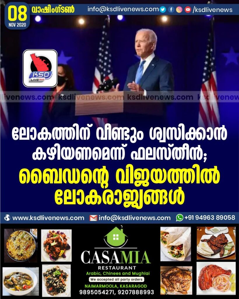 ലോകത്തിന് വീണ്ടും ശ്വസിക്കാൻ കഴിയണമെന്ന് ഫലസ്തീൻ ; ബൈഡന്റെ വിജയത്തിൽ ലോകരാജ്യങ്ങൾ