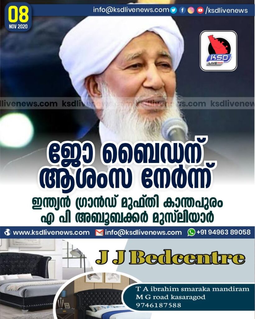 ജോ ബൈഡന് ആശംസ നേർന്ന് ഇന്ത്യൻ ഗ്രാൻഡ് മുഫ്തി കാന്തപുരം എ പി അബൂബക്കർ മുസ്ലിയാർ