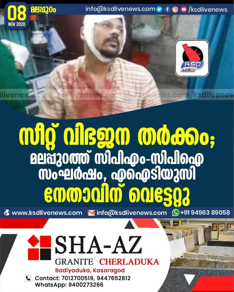 സീറ്റ് വിഭജന തർക്കം ; മലപ്പുറത്ത് സിപിഎം – സിപിഐ സംഘർഷം , എഐടിയുസി നേതാവിന് വെട്ടേറ്റു