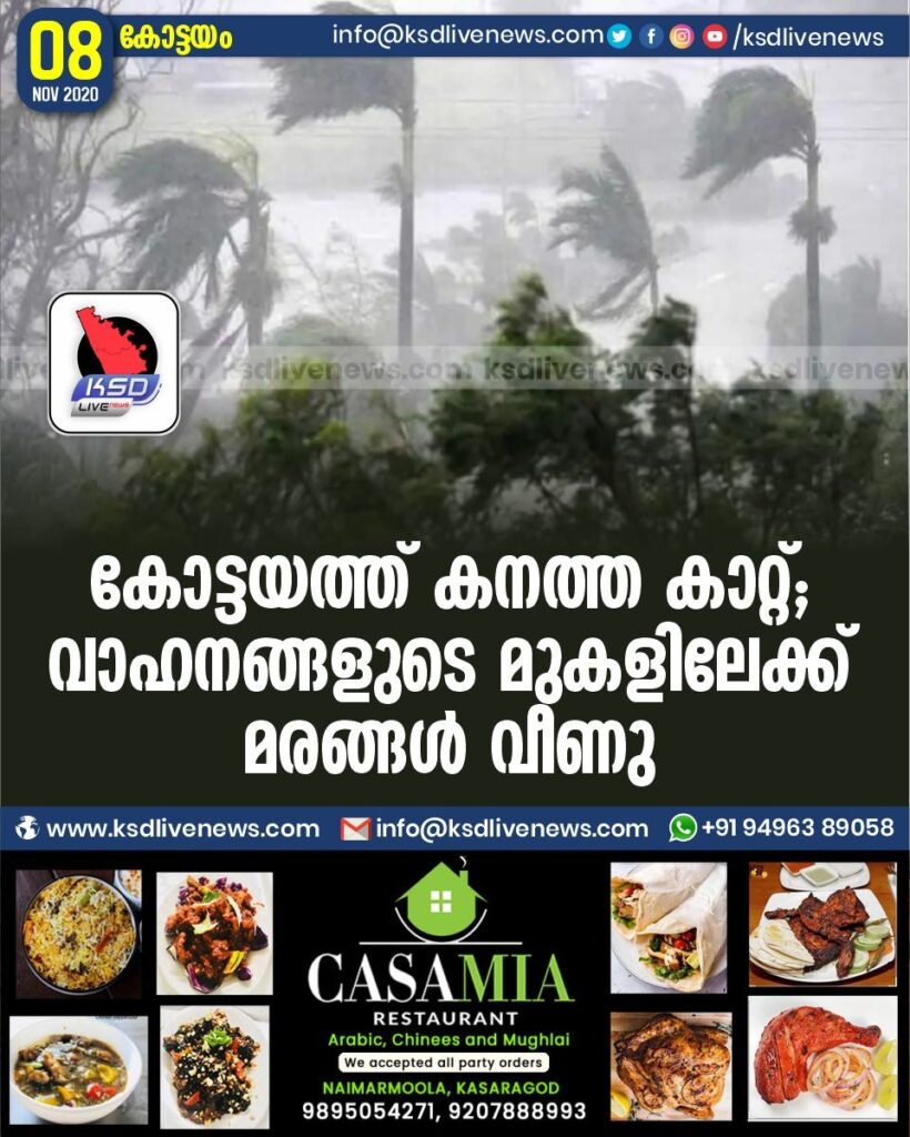 കോട്ടയത്ത് കനത്ത കാറ്റ് ; വാഹനങ്ങളുടെ മുകളിലേക്ക് മരങ്ങൾ വീണു