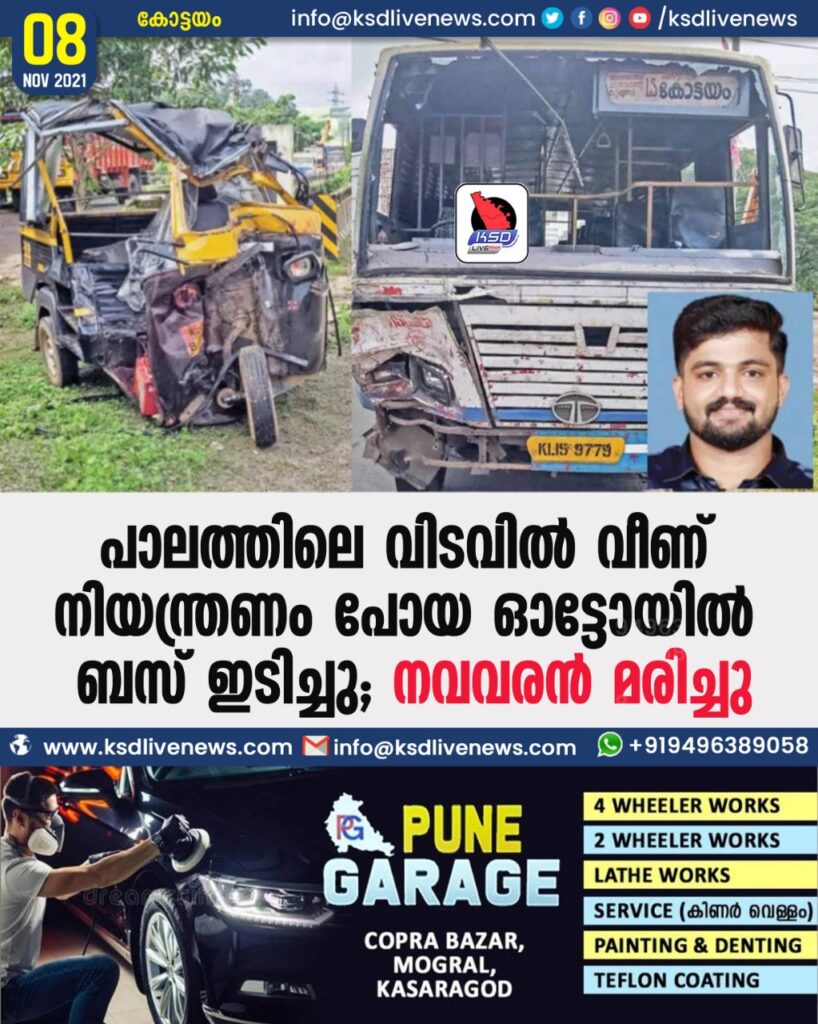 പാലത്തിലെ വിടവിൽവീണ് നിയന്ത്രണംപോയ ഓട്ടോയില് ബസ് ഇടിച്ചു; നവവരന് മരിച്ചു