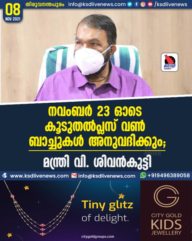 നവംബർ 23 ഓടെ കൂടുതൽ പ്ലസ് വൺ ബാച്ചുകൾ അനുവദിക്കും: മന്ത്രി വി. ശിവൻകുട്ടി