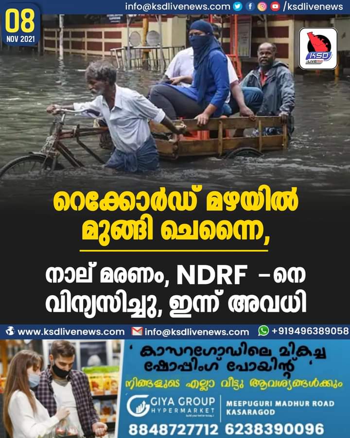 റെക്കോർഡ് മഴയിൽ മുങ്ങി ചെന്നൈ, നാല് മരണം, NDRF-നെ വിന്യസിച്ചു, ഇന്ന് അവധി