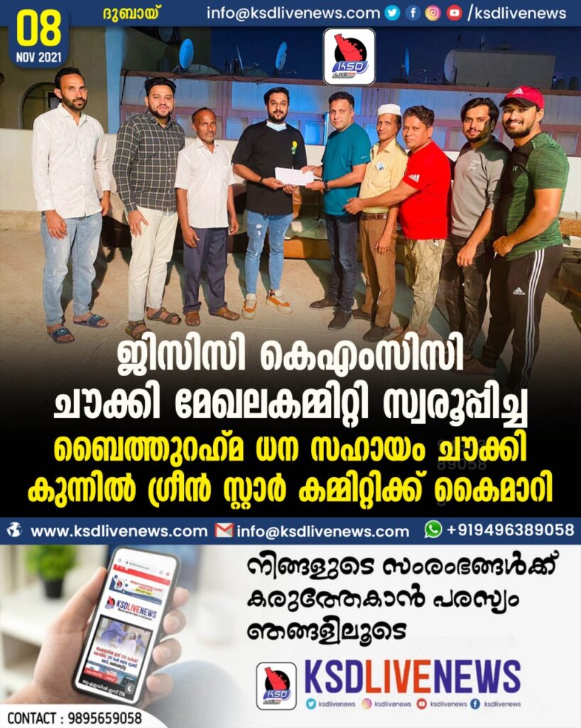 ചൗക്കി മേഖല ജിസിസി കമ്മിറ്റി സ്വരൂപ്പിച്ച തുക.