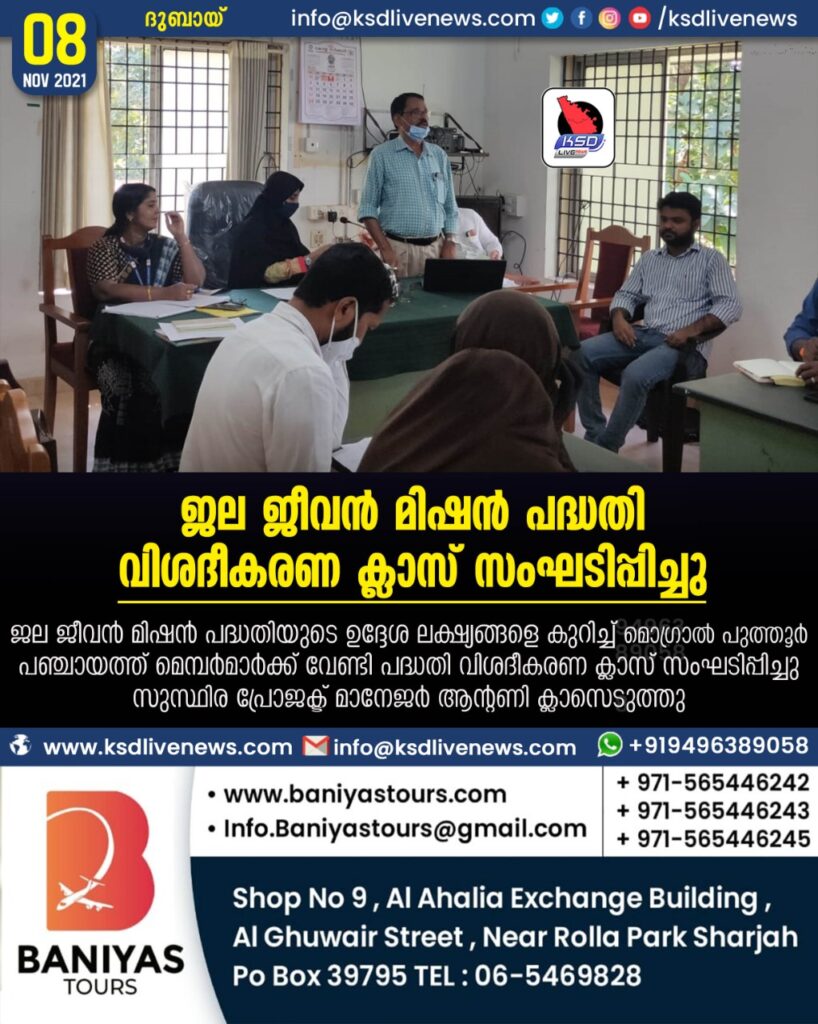 മൊഗ്രാൽ പുത്തൂർ : ജല ജീവൻ മിഷൻ പദ്ധതിയുടെ ഉദ്ദേശ ലക്ഷ്യങ്ങളെ കുറിച്ച് മൊഗ്രാൽ പുത്തൂർ പഞ്ചായത്ത് മെമ്പർമാർക്ക് വേണ്ടി പദ്ധതി വിശദീകരണ ക്ലാസ് സംഘടിപ്പിച്ചു