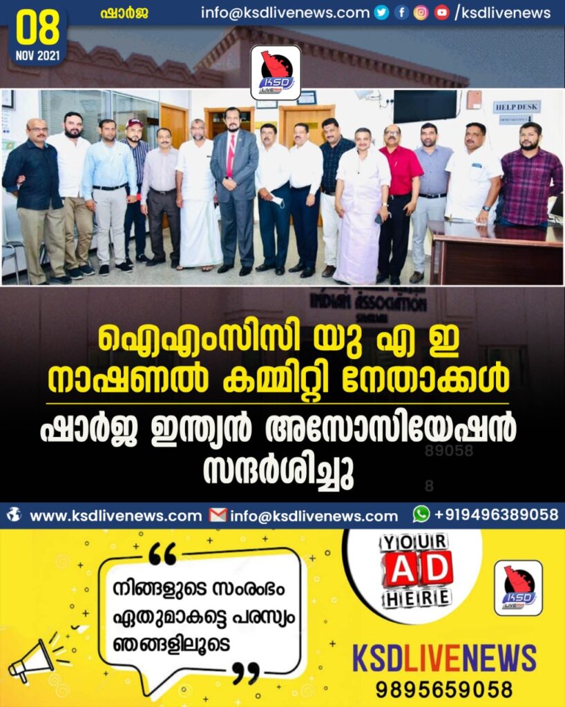 ഐഎംസിസി യു എ ഇ നാഷണൽ കമ്മിറ്റി നേതാക്കൾ ഷാർജ ഇന്ത്യൻ അസോസിയേഷൻ സന്ദർശിച്ചു