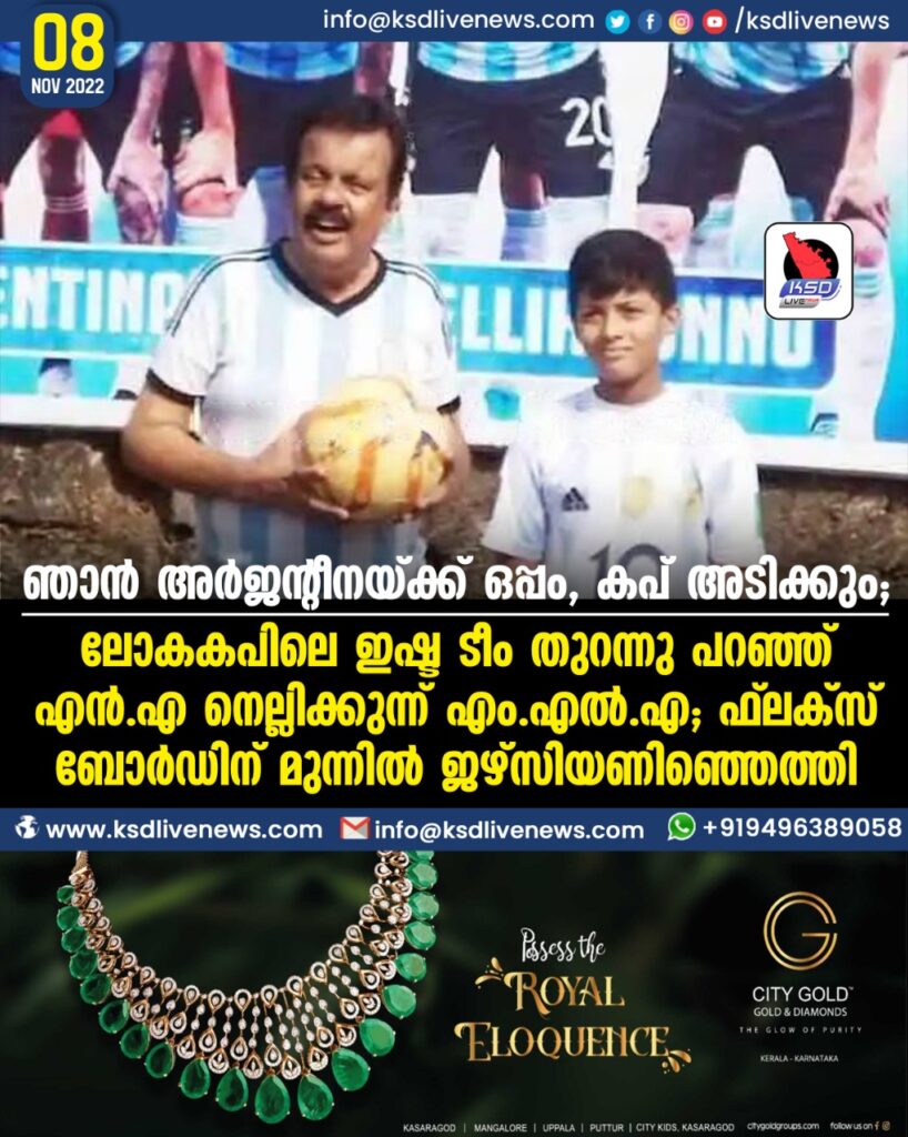ഞാന് അര്ജന്റീനയ്ക്ക് ഒപ്പം, കപ് അടിക്കും’; ലോകകപിലെ ഇഷ്ട ടീം തുറന്നുപറഞ്ഞ് എന്എ നെല്ലിക്കുന്ന് എംഎല്എ; ഫ്ലക്സ് ബോര്ഡിന് മുന്നില് ജഴ്സിയണിഞ്ഞെത്തി
