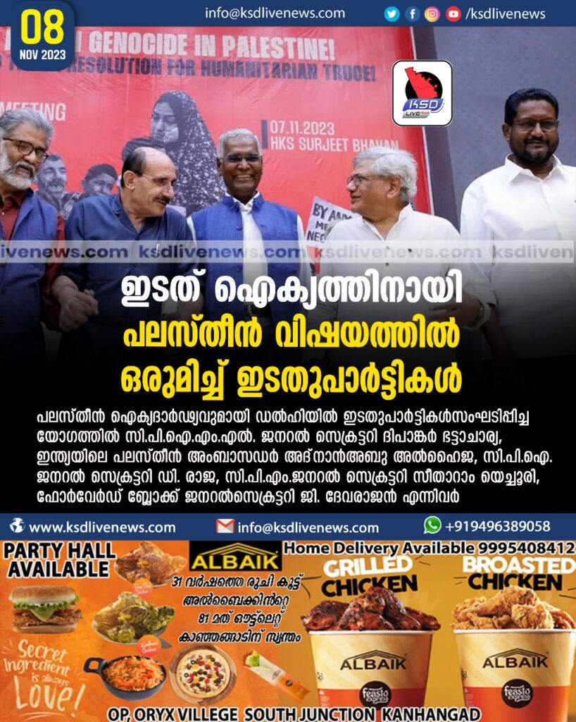 ഇടത് ഐക്യത്തിനായി പലസ്തീന് വിഷയത്തില് ഒരുമിച്ച് ഇടതുപാര്ട്ടികള്