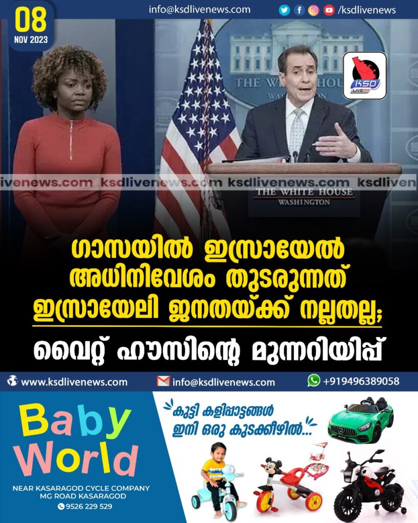 ഗാസയില് ഇസ്രായേല് അധിനിവേശം തുടരുന്നത് ഇസ്രായേലി ജനതയ്ക്ക് നല്ലതല്ല; വൈറ്റ് ഹൗസിന്റെ മുന്നറിയിപ്പ്