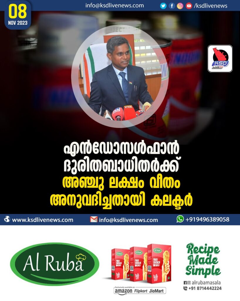 എൻഡോസൾഫാൻ ദുരിതബാധിതർക്ക്​ അഞ്ചു ലക്ഷം വീതം അനുവദിച്ചതായി കലക്ടർ
