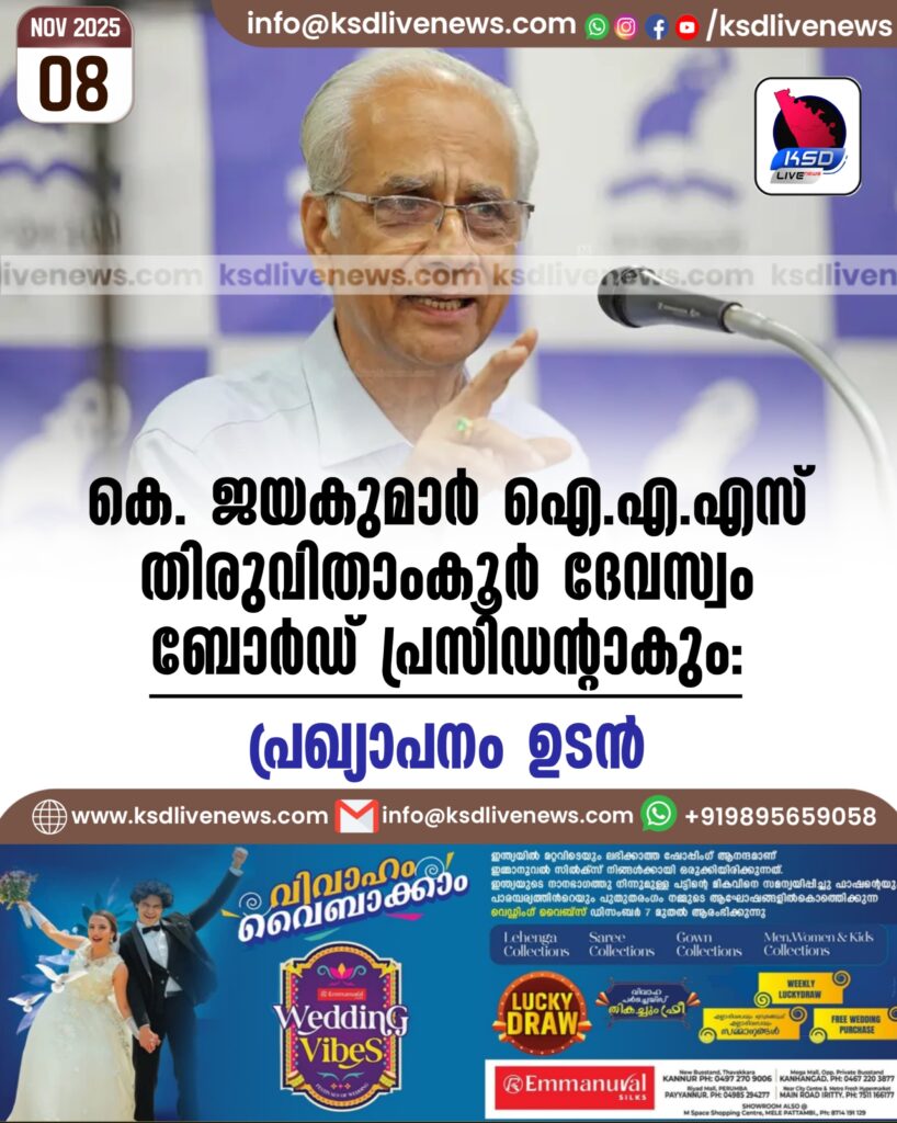 കെ. ജയകുമാർ ഐ.എ.എസ് തിരുവിതാംകൂർ ദേവസ്വം ബോർഡ് പ്രസിഡൻ്റാകും: പ്രഖ്യാപനം ഉടൻ
