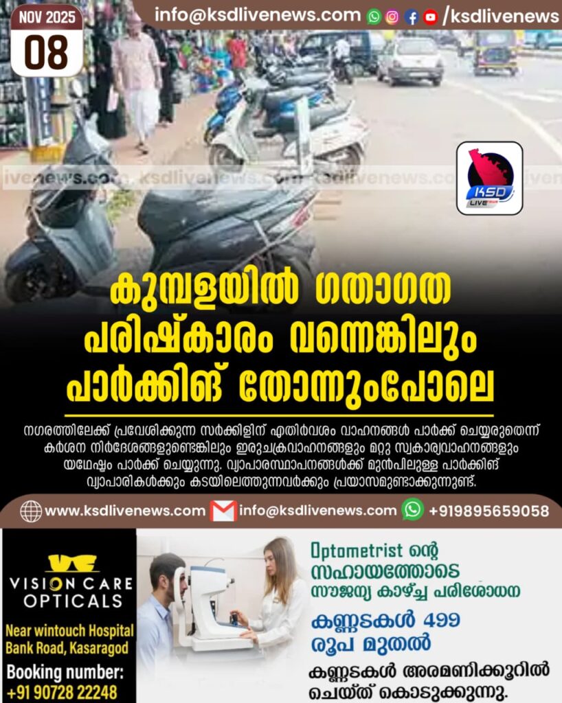 കുമ്പള: നഗരത്തിൽ കൊട്ടിഗ്ഘോഷിച്ച് ഗതാഗതപരിഷ്കാരം നടപ്പാക്കിയെങ്കിലും വാഹനങ്ങളുടെ അനധികൃത പാർക്കിങ്ങിന് കുറവില്ല. നഗരത്തിലേക്ക് പ്രവേശിക്കുന്ന സർക്കിളിന് എതിർവശം വാഹനങ്ങൾ പാർക്ക് ചെയ്യരുതെന്ന് കർശന നിർദേശങ്ങളുണ്ടെങ്കിലും ഇരുചക്രവാഹനങ്ങളും മറ്റു സ്വകാര്യവാഹനങ്ങളും യഥേഷ്ടം പാർക്ക് ചെയ്യുന്നു. വ്യാപാരസ്ഥാപനങ്ങൾക്ക് മുൻപിലുള്ള പാർക്കിങ് വ്യാപാരികൾക്കും കടയിലെത്തുന്നവർക്കും പ്രയാസമുണ്ടാക്കുന്നുണ്ട്.