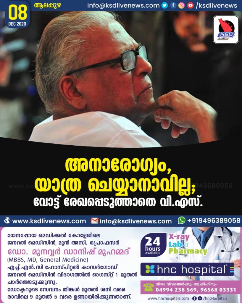 അനാരോഗ്യം, യാത്ര ചെയ്യാനാവില്ല; വോട്ട് രേഖപ്പെടുത്താതെ വി.എസ്.