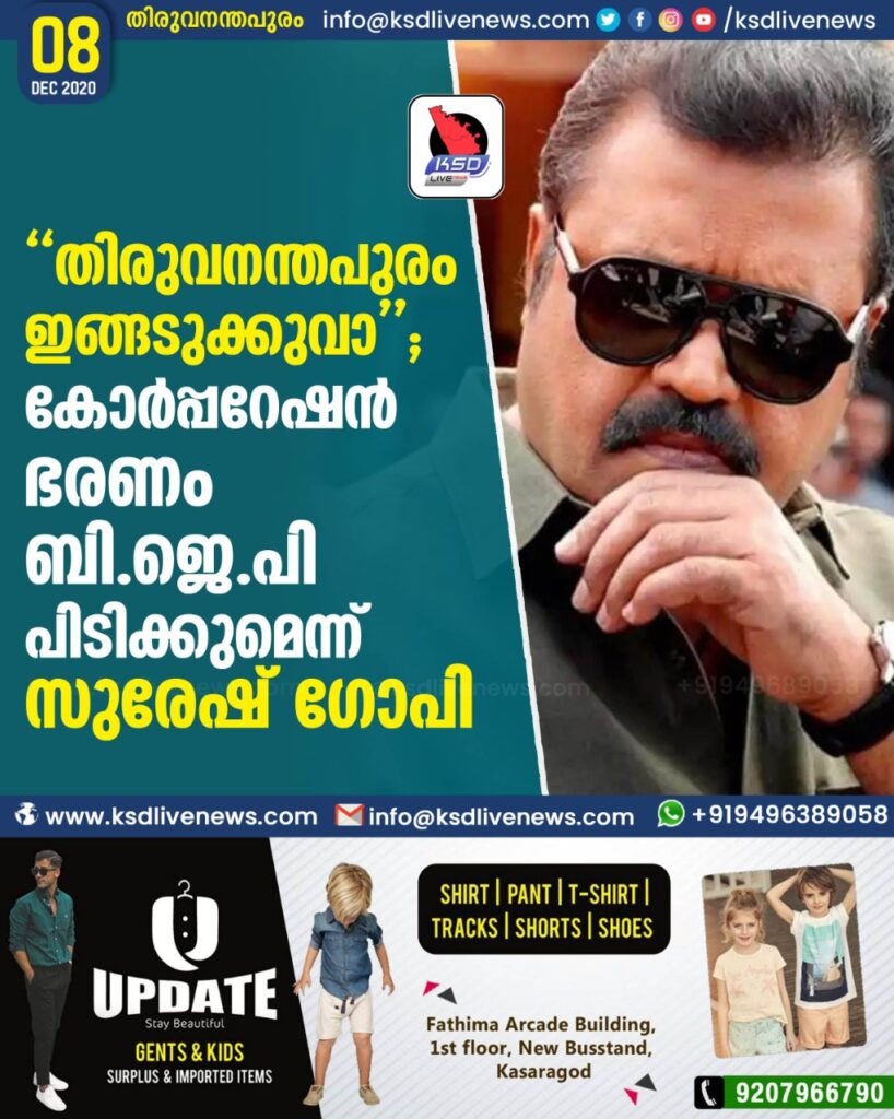 “തിരുവനന്തപുരം ഇങ്ങടുക്കുവാ ” ; കോർപ്പറേഷൻ ഭരണം ബി.ജെ.പി പിടിക്കുമെന്ന് സുരേഷ് ഗോപി