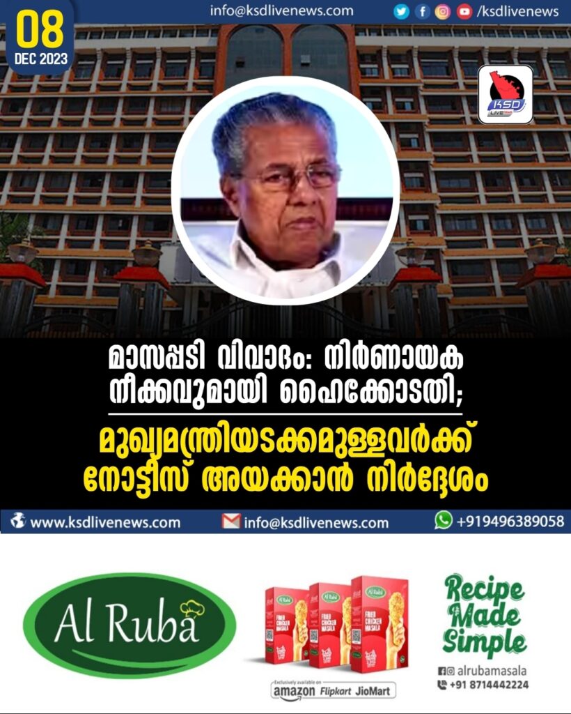 മാസപ്പടി വിവാദം: നിര്‍ണായക നീക്കവുമായി ഹൈക്കോടതി; മുഖ്യമന്ത്രിയടക്കമുള്ളവർക്ക് നോട്ടീസ് അയക്കാൻ നിര്‍ദ്ദേശം