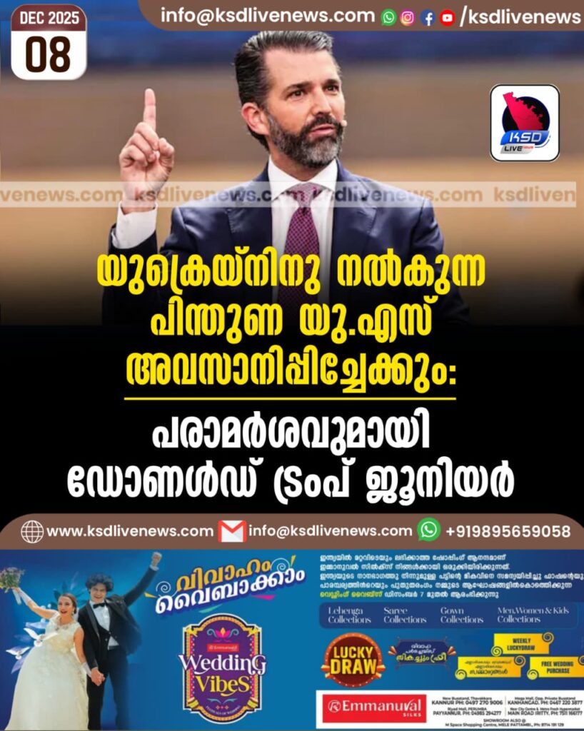 യുക്രെയ്നിനു നൽകുന്ന പിന്തുണ യു.എസ് അവസാനിപ്പിച്ചേക്കും: പരാമർശവുമായി ഡോണൾഡ് ട്രംപ് ജൂനിയർ
