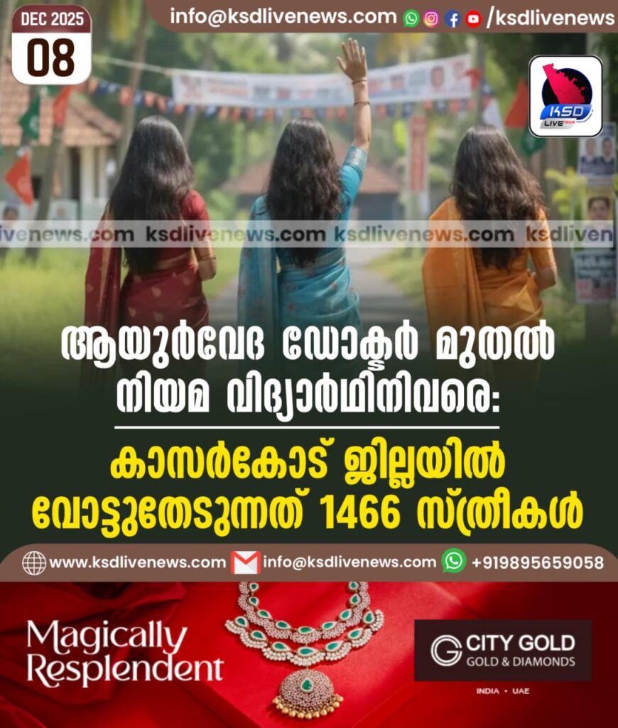 ആയുർവേദ ഡോക്ടർ മുതൽ നിയമ വിദ്യാർഥിനിവരെ: കാസർകോട് ജില്ലയിൽ വോട്ടുതേടുന്നത് 1466 സ്ത്രീകൾ