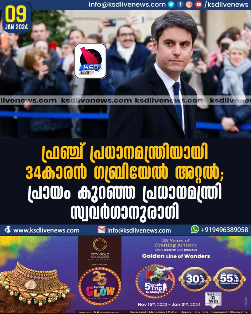 ഫ്രഞ്ച് പ്രധാനമന്ത്രിയായി 34കാരൻ ഗബ്രിയേൽ അറ്റൽ; പ്രായം കുറഞ്ഞ പ്രധാനമന്ത്രി, സ്വവർഗാനുരാഗി