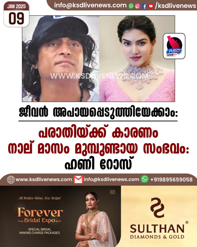 ജീവന് അപായപ്പെടുത്തിയേക്കാം: പരാതിയ്ക്ക് കാരണം നാല് മാസം മുമ്പുണ്ടായ സംഭവം: ഹണി റോസ്