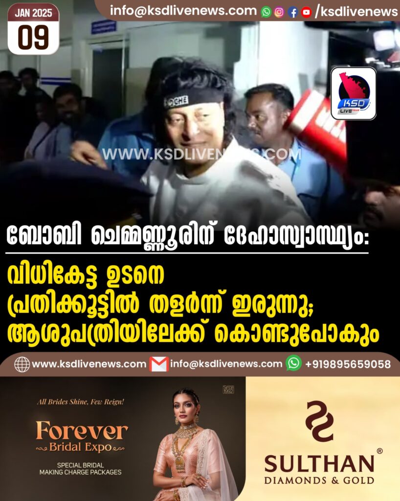ബോബി ചെമ്മണ്ണൂരിന് ദേഹാസ്വാസ്ഥ്യം: വിധികേട്ട ഉടനെ പ്രതിക്കൂട്ടില് തളര്ന്ന് ഇരുന്നു; ആശുപത്രിയിലേക്ക് കൊണ്ടുപോകും