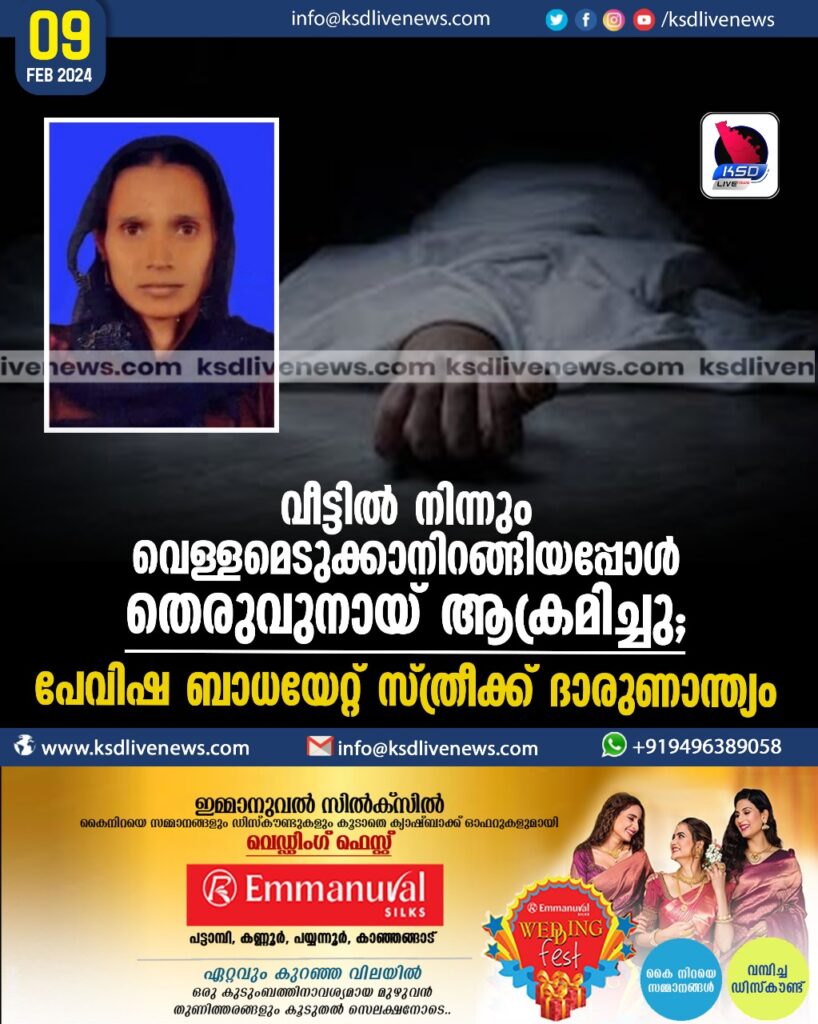 വീട്ടില്‍നിന്നും വെള്ളമെടുക്കാനിറങ്ങിയപ്പോള്‍ തെരുവുനായ് ആക്രമിച്ചു; പേവിഷ ബാധയേറ്റ് സ്ത്രീക്ക് ദാരുണാന്ത്യം