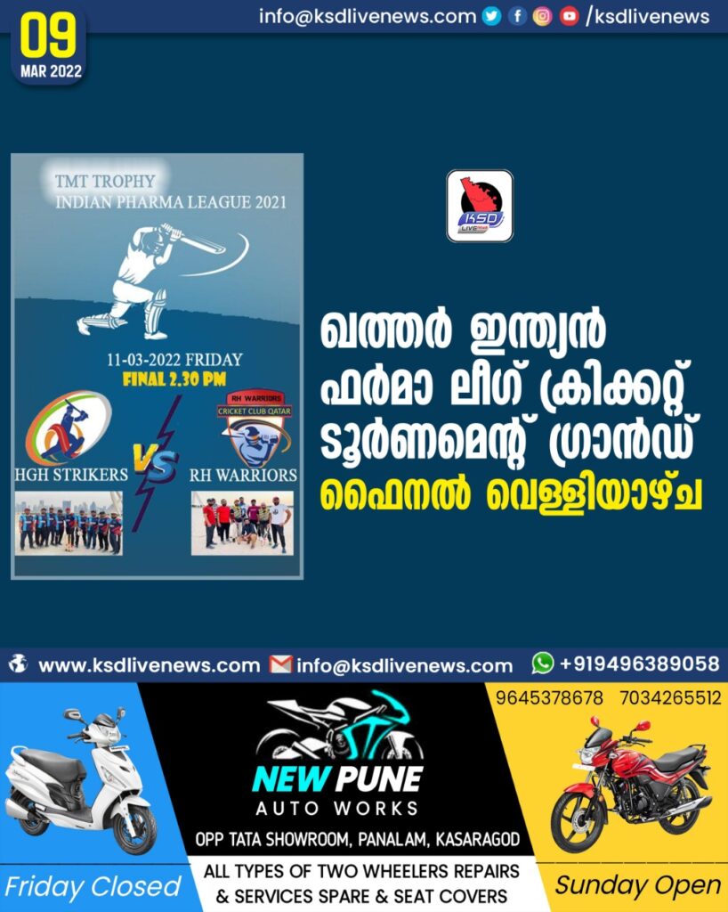 ഖത്തർ ഇന്ത്യൻ ഫർമാ ലീഗ് ക്രിക്കറ്റ് ടൂർണമെന്റ് ഗ്രാൻഡ് ഫൈനൽ വെള്ളിയാഴ്ച