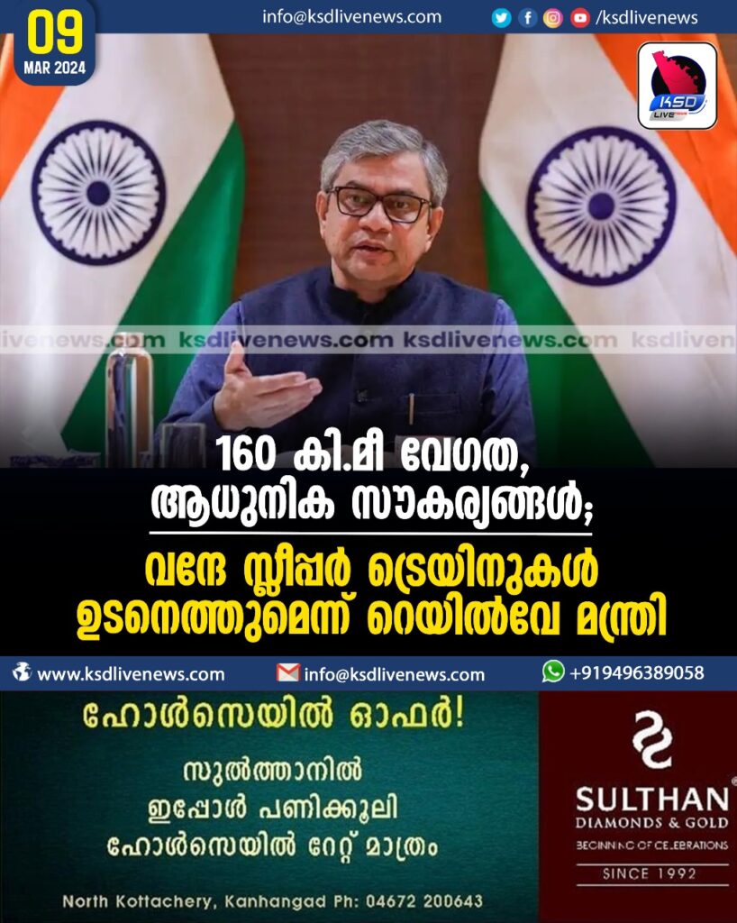 160 കി.മീ വേഗത, ആധുനിക സൗകര്യങ്ങൾ; വന്ദേ സ്ലീപ്പർ ട്രെയിനുകൾ ഉടനെത്തുമെന്ന് റെയിൽവേ മന്ത്രി
