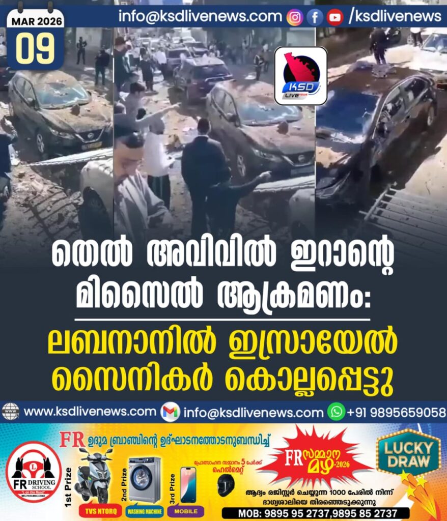 തെല്‍ അവിവില്‍ ഇറാൻ്റെ മിസൈല്‍ ആക്രമണം; ലബനാനില്‍ ഇസ്രായേല്‍ സൈനികര്‍ കൊല്ലപ്പെട്ടു