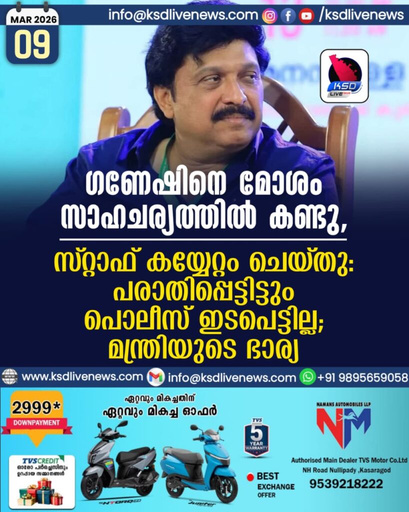 ഗണേഷിനെ മോശം സാഹചര്യത്തില് കണ്ടു, സ്റ്റാഫ് കയ്യേറ്റം ചെയ്തു: പരാതിപ്പെട്ടിട്ടും പൊലീസ് ഇടപെട്ടില്ല; മന്ത്രിയുടെ ഭാര്യ