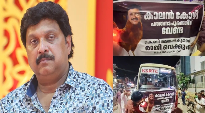 കാലൻ കോഴി പത്തനാപുരത്തിന് വേണ്ട: മന്ത്രി കെ.ബി ഗണേഷ്കുമാറിനെതിരെ കെ.എസ്.യു പ്രതിഷേധം