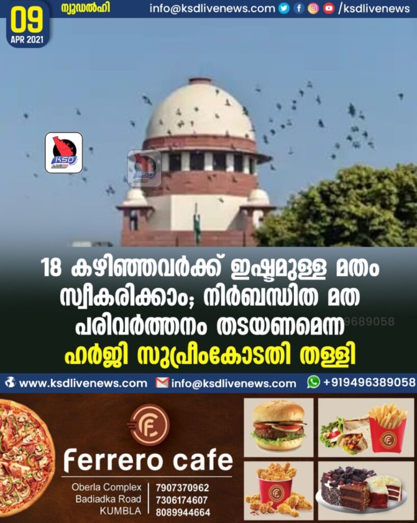 ഇഷ്ടമുള്ള മതം സ്വീകരിക്കാം;നിർബന്ധിത മതപരിവർത്തനം തടയണമെന്ന ഹർജി സുപ്രീംകോടതി തള്ളി