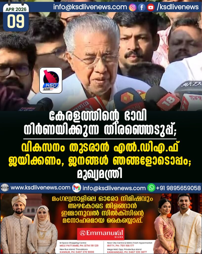 കേരളത്തിന്റെ ഭാവി നിർണയിക്കുന്ന തിരഞ്ഞെടുപ്പ്; വികസനം തുടരാൻ LDF ജയിക്കണം, ജനങ്ങൾ ഞങ്ങളോടൊപ്പം’; മുഖ്യമന്ത്രി