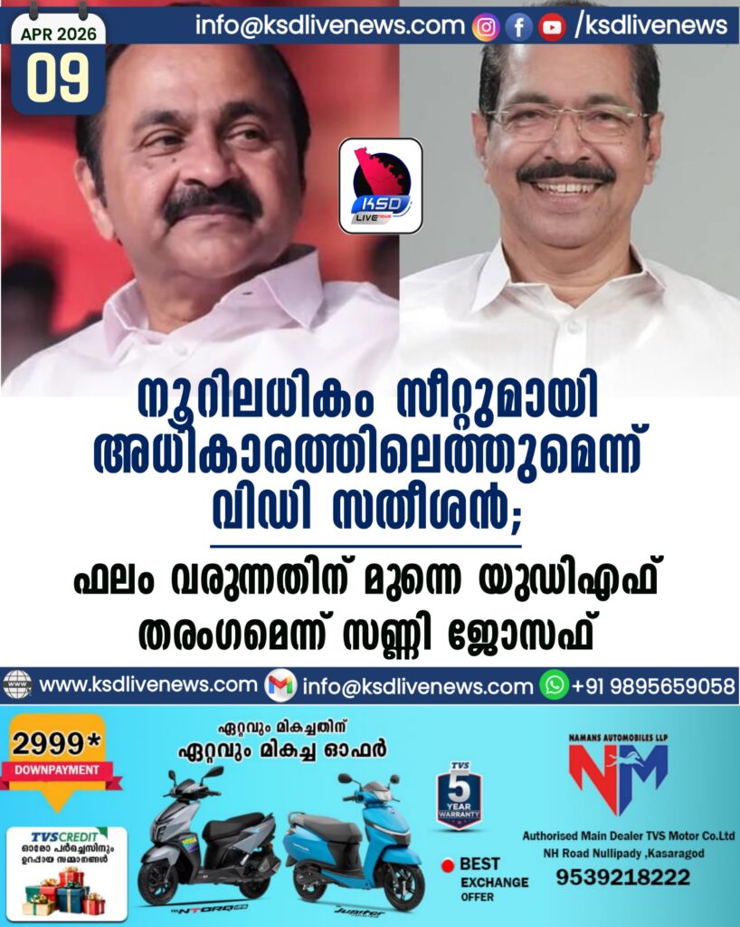 നൂറിലധികം സീറ്റുമായി അധികാരത്തിലെത്തുമെന്ന് വിഡി സതീശൻ; ഫലം വരുന്നതിന് മുന്നെ യുഡിഎഫ് തരംഗമെന്ന് സണ്ണി ജോസഫ്