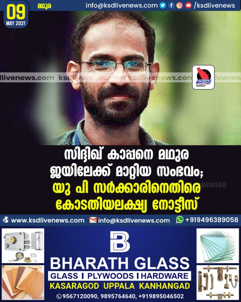 സിദ്ദിഖ് കാപ്പനെ മഥുര ജയിലേക്ക് മാറ്റിയ സംഭവം; യു പി സര്‍ക്കാരിനെതിരെ കോടതിയലക്ഷ്യ നോട്ടീസ്