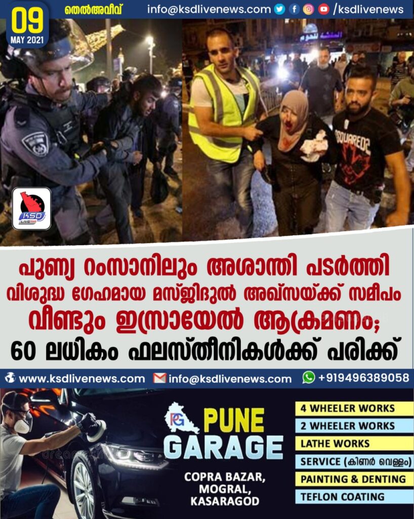 പുണ്യ റംസാനിലും അശാന്തി പടർത്തി വിശുദ്ധ ഗേഹമായ മസ്ജിദുല് അഖ്സയ്ക്ക് സമീപം വീണ്ടും ഇസ്രായേല് ആക്രമണം; 60 ലധികം ഫലസ്തീനികള്ക്ക് പരിക്ക്