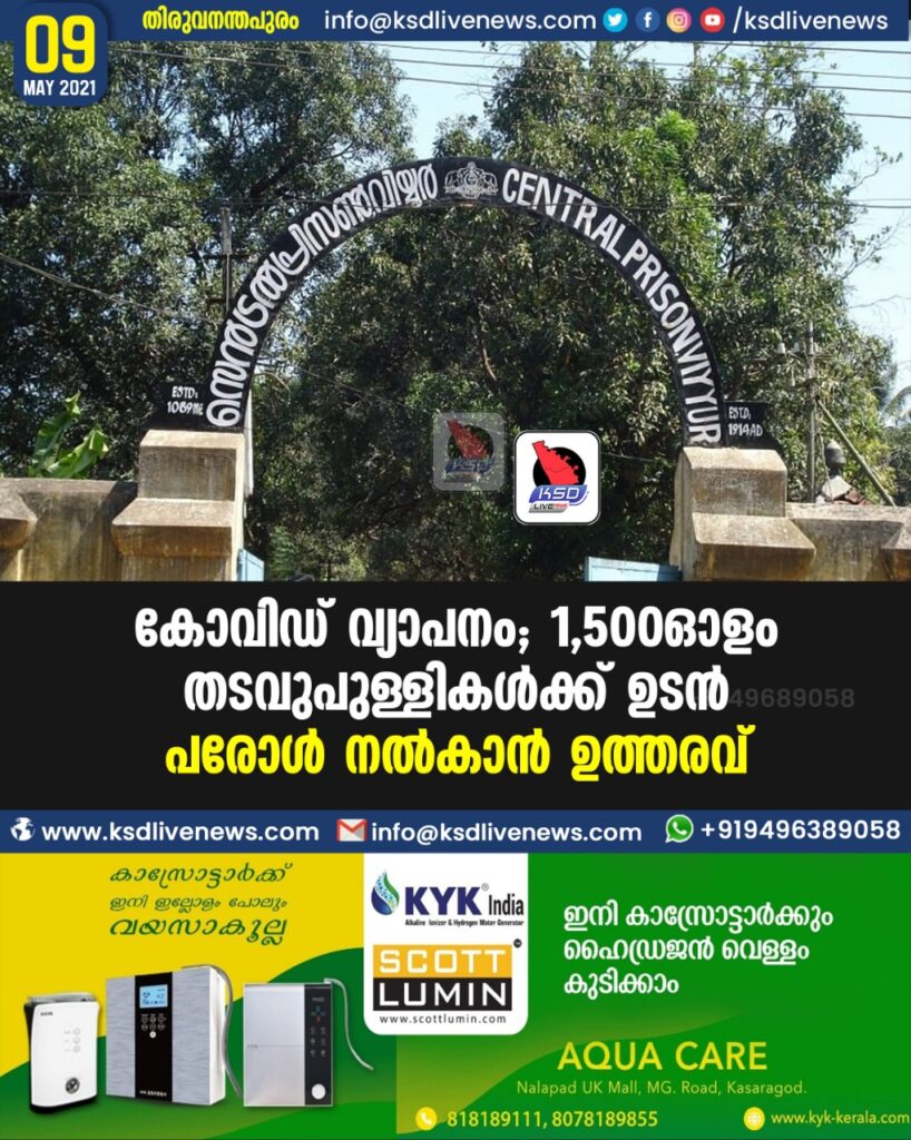 കോവിഡ് വ്യാപനം; 1,500ഓളം തടവുപുള്ളികള്ക്ക് ഉടന് പരോള് നല്കാന് ഉത്തരവ്