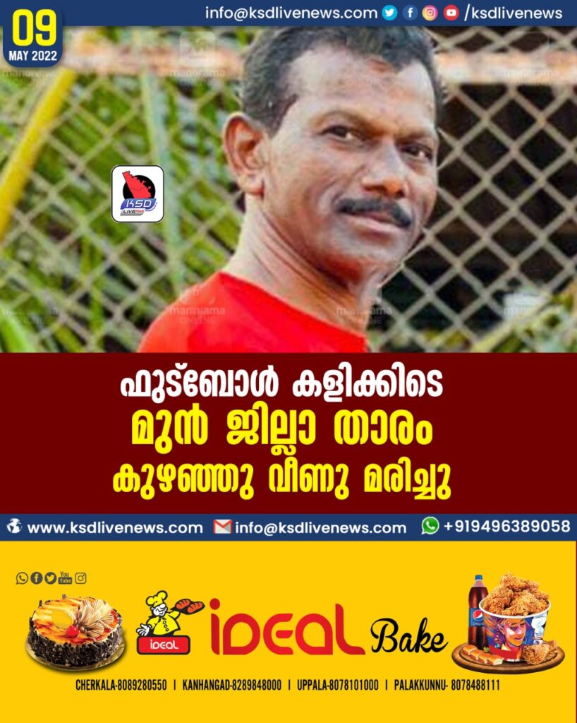 ഫുട്ബോൾ കളിക്കിടെ മുൻ ജില്ലാതാരം കുഴഞ്ഞു വീണു മരിച്ചു