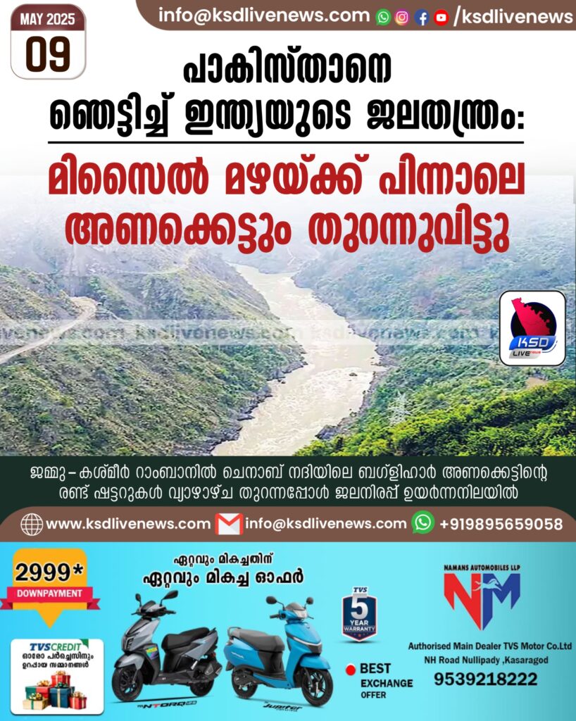 പാകിസ്താനെ ഞെട്ടിച്ച് ഇന്ത്യയുടെ ജലതന്ത്രം: മിസൈൽമഴയ്ക്ക് പിന്നാലെ അണക്കെട്ടും തുറന്നുവിട്ടു