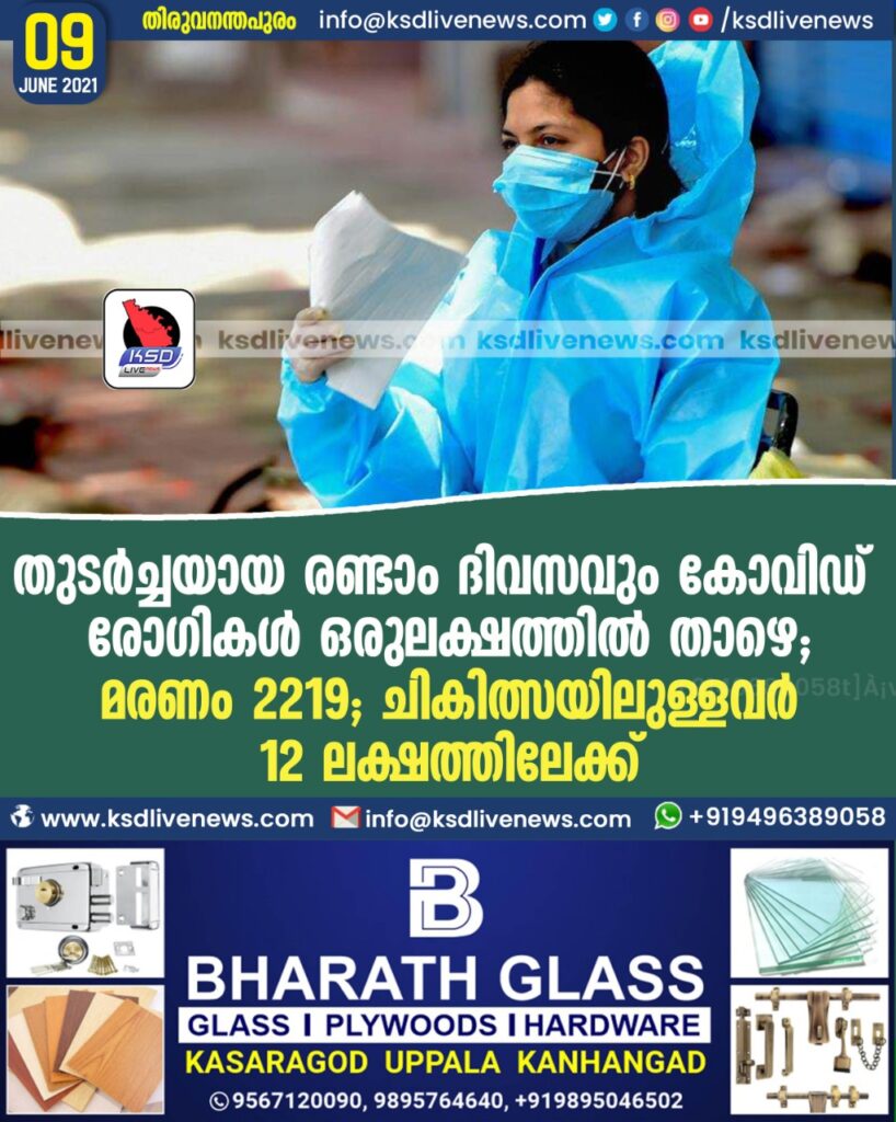 തുടര്ച്ചയായ രണ്ടാം ദിവസവും കോവിഡ് രോഗികള് ഒരുലക്ഷത്തില് താഴെ; മരണം 2219; ചികിത്സയിലുള്ളവര് 12 ലക്ഷത്തിലേക്ക്