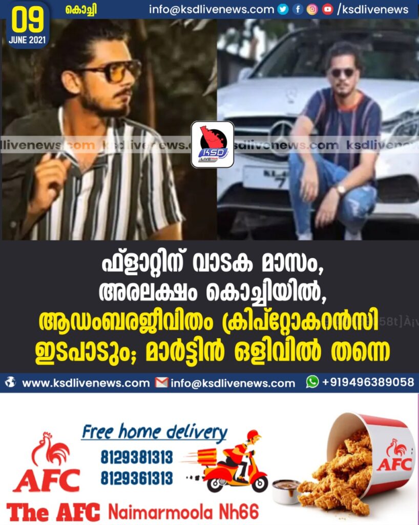 ഫ്ളാറ്റിന് വാടക മാസം അരലക്ഷം, കൊച്ചിയില് ആഡംബരജീവിതം, ക്രിപ്റ്റോകറന്സി ഇടപാടും; മാര്ട്ടിന് ഒളിവില് തന്നെ