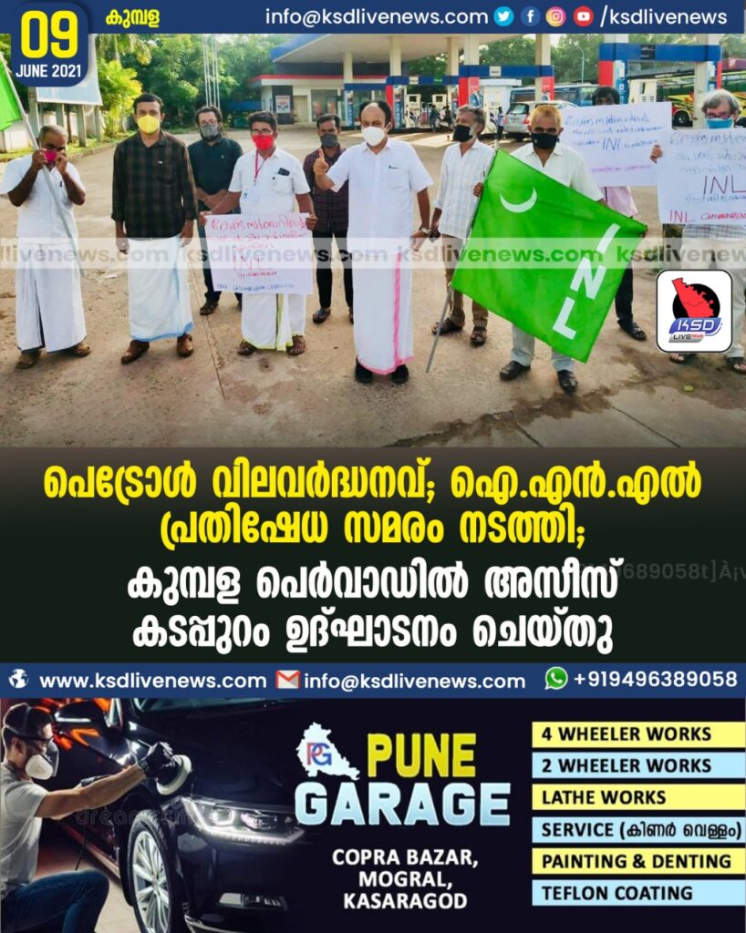 പെട്രോൾ-വിലവർദ്ധനവ്;ഐ.എൻ.എൽ പ്രതിഷേധ സമരം നടത്തി; കുമ്പള പെർവാഡിൽ അസീസ് കടപ്പുറം ഉദ്ഘാടനം ചെയ്തു
