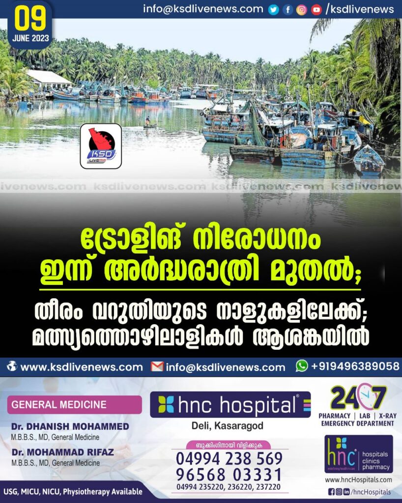 ട്രോളിങ് നിരോധനം ഇന്ന് അർദ്ധരാത്രി മുതൽ; തീരം വറുതിയുടെ നാളുകളിലേക്ക്; മത്സ്യത്തൊഴിലാളികൾ ആശങ്കയിൽ